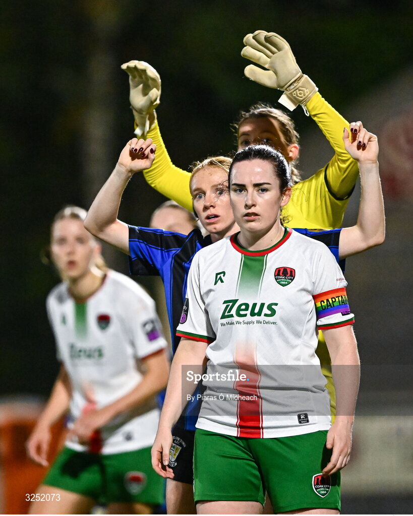 1 October 2025; Kelly Brady of Athlone Town surrounded by Cork City players as she awaits a corner for her side during the SSE Airtricity Women's Premier Division match between Cork City and Athlone Town at Turner's Cross in Cork. Photo by Piaras Ó Mídheach/Sportsfile