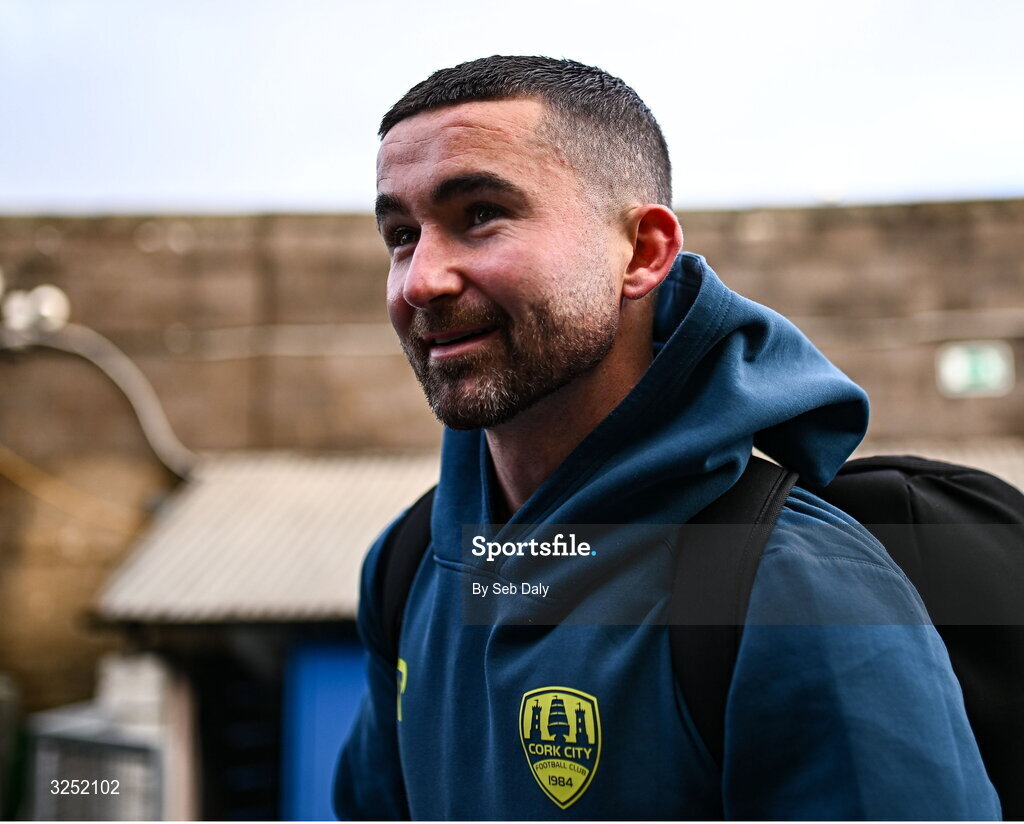 3 October 2025; Sean Maguire of Cork City arrives before the Sports Direct Men’s FAI Cup semi-final match between Cork City and St Patrick's Athletic at Turner’s Cross in Cork. Photo by Seb Daly/Sportsfile
