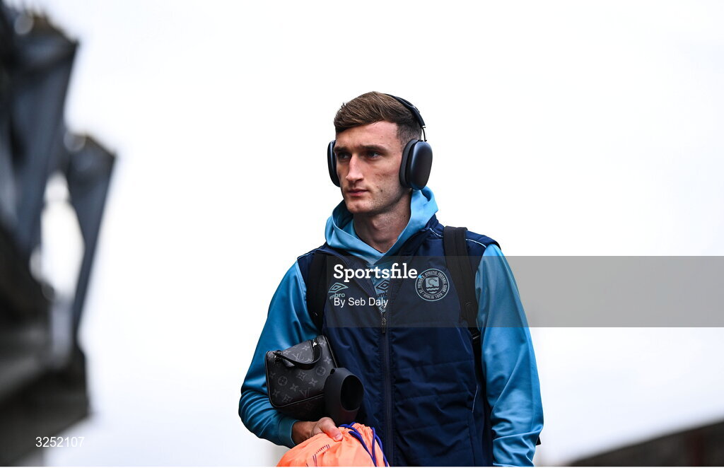 3 October 2025; Mason Melia of St Patrick's Athletic arrives before the Sports Direct Men’s FAI Cup semi-final match between Cork City and St Patrick's Athletic at Turner’s Cross in Cork. Photo by Seb Daly/Sportsfile