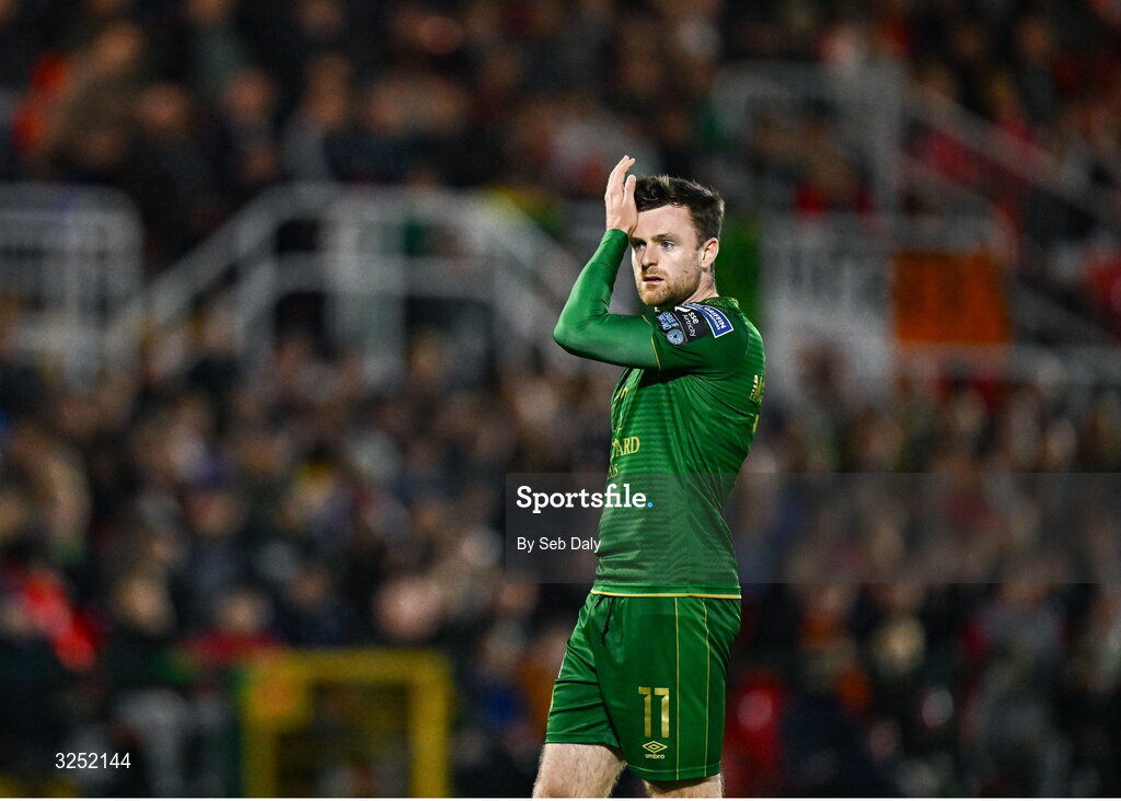 3 October 2025; Jay McClelland of St Patrick's Athletic during the Sports Direct Men’s FAI Cup semi-final match between Cork City and St Patrick's Athletic at Turner’s Cross in Cork. Photo by Seb Daly/Sportsfile