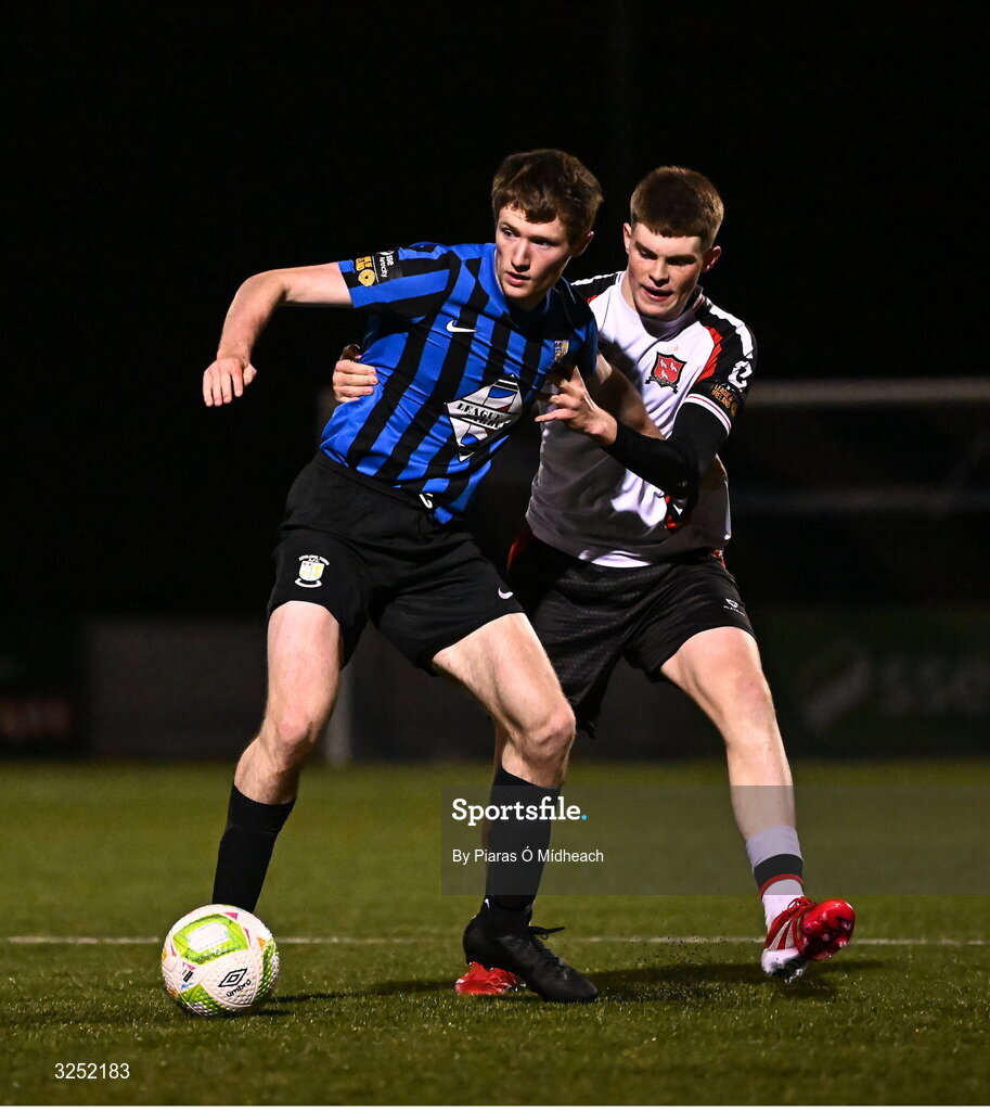 3 October 2025; Ben Feeney of Athlone Town in action against Vincent Leonard of Dundalk during the SSE Airtricity Men's First Division match between Athlone Town and Dundalk at Athlone Town Stadium in Westmeath. Photo by Piaras Ó Mídheach/Sportsfile
