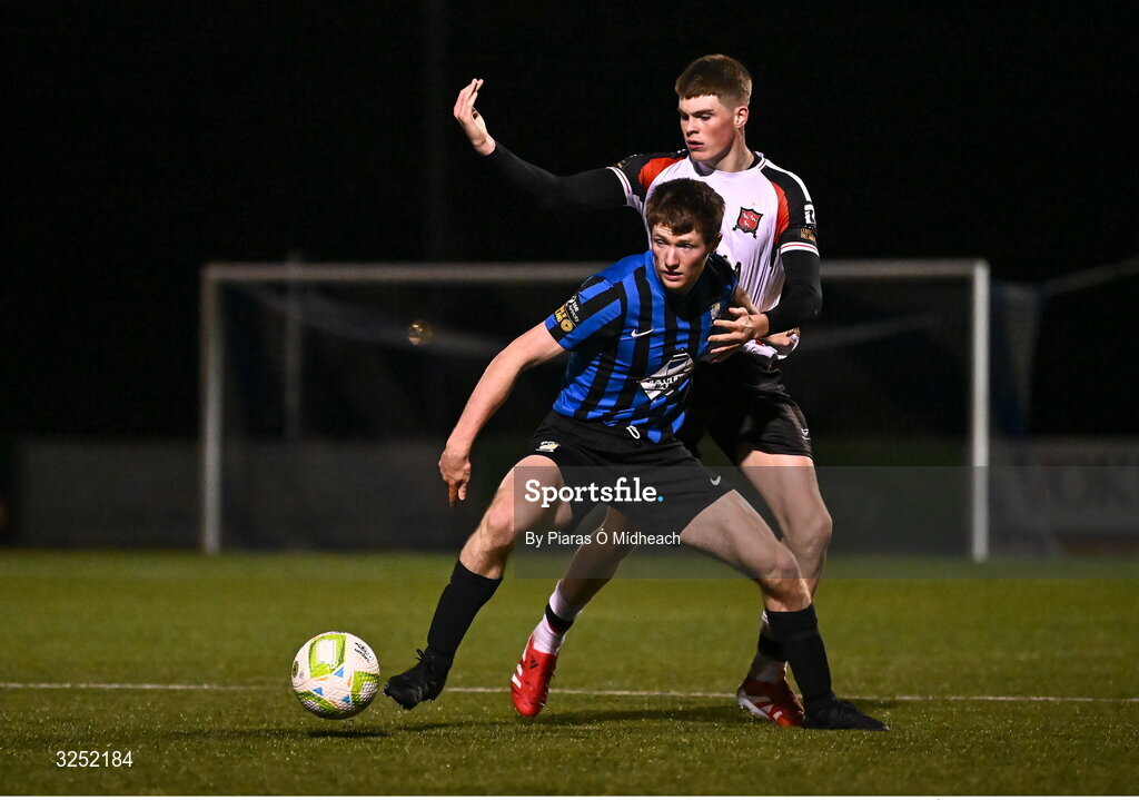 3 October 2025; Ben Feeney of Athlone Town in action against Vincent Leonard of Dundalk during the SSE Airtricity Men's First Division match between Athlone Town and Dundalk at Athlone Town Stadium in Westmeath. Photo by Piaras Ó Mídheach/Sportsfile