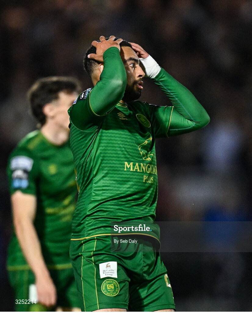 3 October 2025; Jake Mulraney of St Patrick's Athletic reacts during the Sports Direct Men’s FAI Cup semi-final match between Cork City and St Patrick's Athletic at Turner’s Cross in Cork. Photo by Seb Daly/Sportsfile