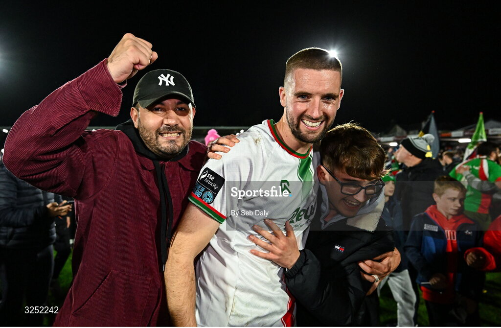 3 October 2025; Fiacre Kelleher of Cork City celebrates with supporters after his side's victory in the Sports Direct Men’s FAI Cup semi-final match between Cork City and St Patrick's Athletic at Turner’s Cross in Cork. Photo by Seb Daly/Sportsfile