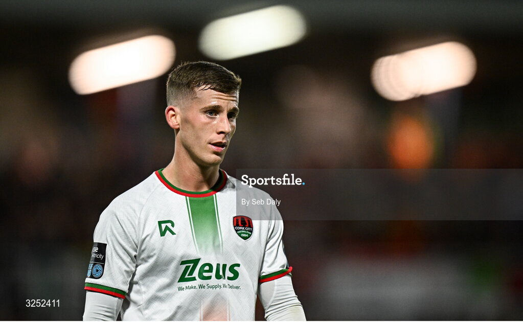 3 October 2025; Evan McLaughlin of Cork City during the Sports Direct Men’s FAI Cup semi-final match between Cork City and St Patrick's Athletic at Turner’s Cross in Cork. Photo by Seb Daly/Sportsfile