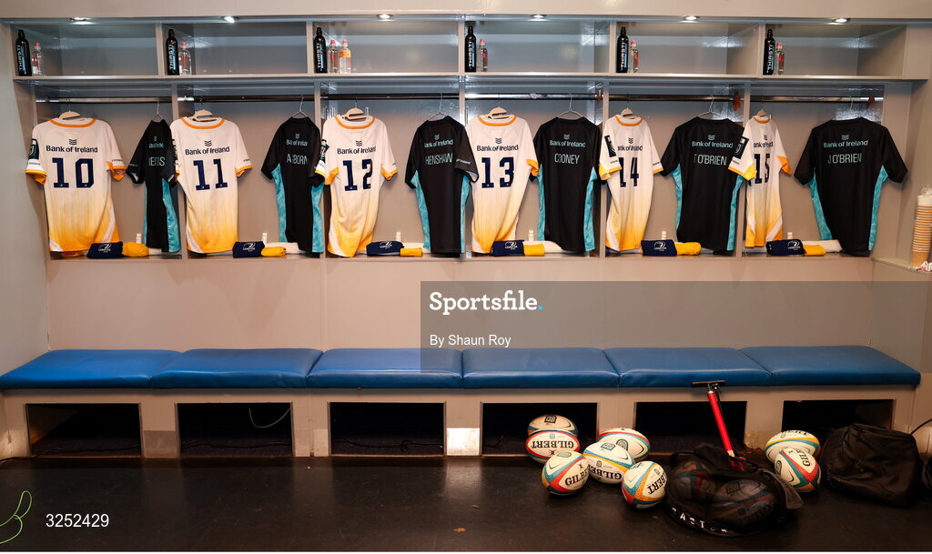 4 October 2025; Leinster jerseys hang in the dressing room before the United Rugby Championship match between Vodacom Bulls and Leinster at Loftus Versfeld Stadium in Pretoria, South Africa. Photo by Shaun Roy/Sportsfile