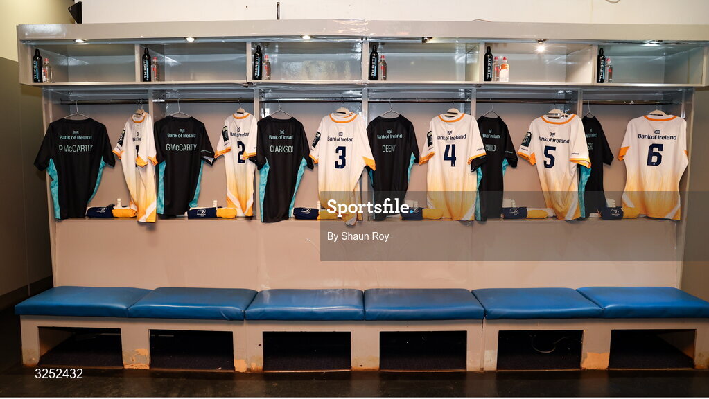 4 October 2025; Leinster jerseys hang in the dressing room before the United Rugby Championship match between Vodacom Bulls and Leinster at Loftus Versfeld Stadium in Pretoria, South Africa. Photo by Shaun Roy/Sportsfile