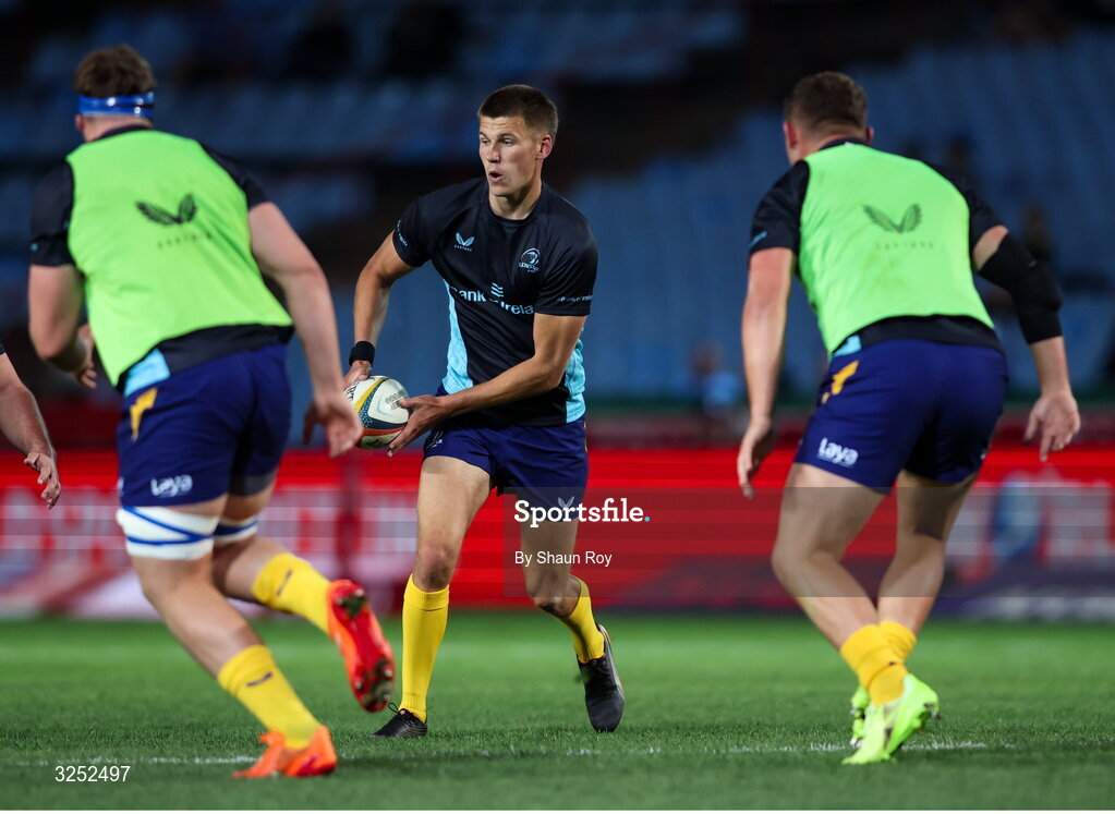4 October 2025; Sam Prendergast of Leinster before the United Rugby Championship match between Vodacom Bulls and Leinster at Loftus Versfeld Stadium in Pretoria, South Africa. Photo by Shaun Roy/Sportsfile