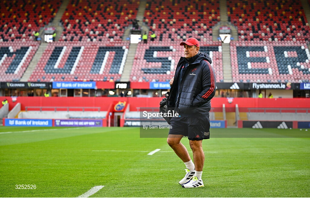 4 October 2025; Munster head coach Clayton McMillan arrives before the United Rugby Championship match between Munster and Cardiff Rugby at Thomond Park in Limerick. Photo by Sam Barnes/Sportsfile