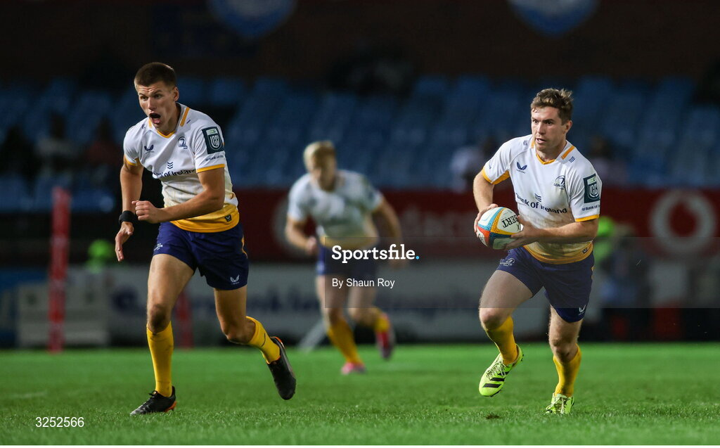 4 October 2025; Luke McGrath of Leinster, right, and teammate Sam Prendergast during the United Rugby Championship match between Vodacom Bulls and Leinster at Loftus Versfeld Stadium in Pretoria, South Africa. Photo by Shaun Roy/Sportsfile