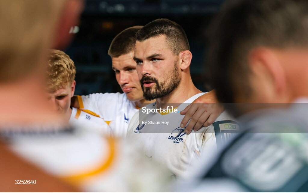 4 October 2025; Max Deegan of Leinster with teammates after the United Rugby Championship match between Vodacom Bulls and Leinster at Loftus Versfeld Stadium in Pretoria, South Africa. Photo by Shaun Roy/Sportsfile