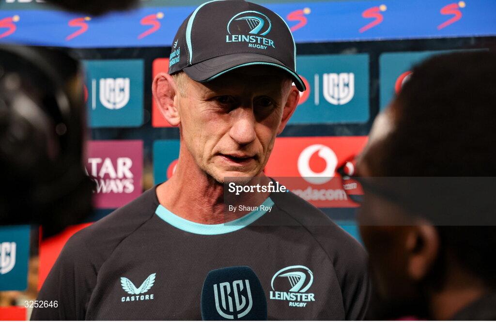4 October 2025; Leinster head coach Leo Cullen after the United Rugby Championship match between Vodacom Bulls and Leinster at Loftus Versfeld Stadium in Pretoria, South Africa. Photo by Shaun Roy/Sportsfile