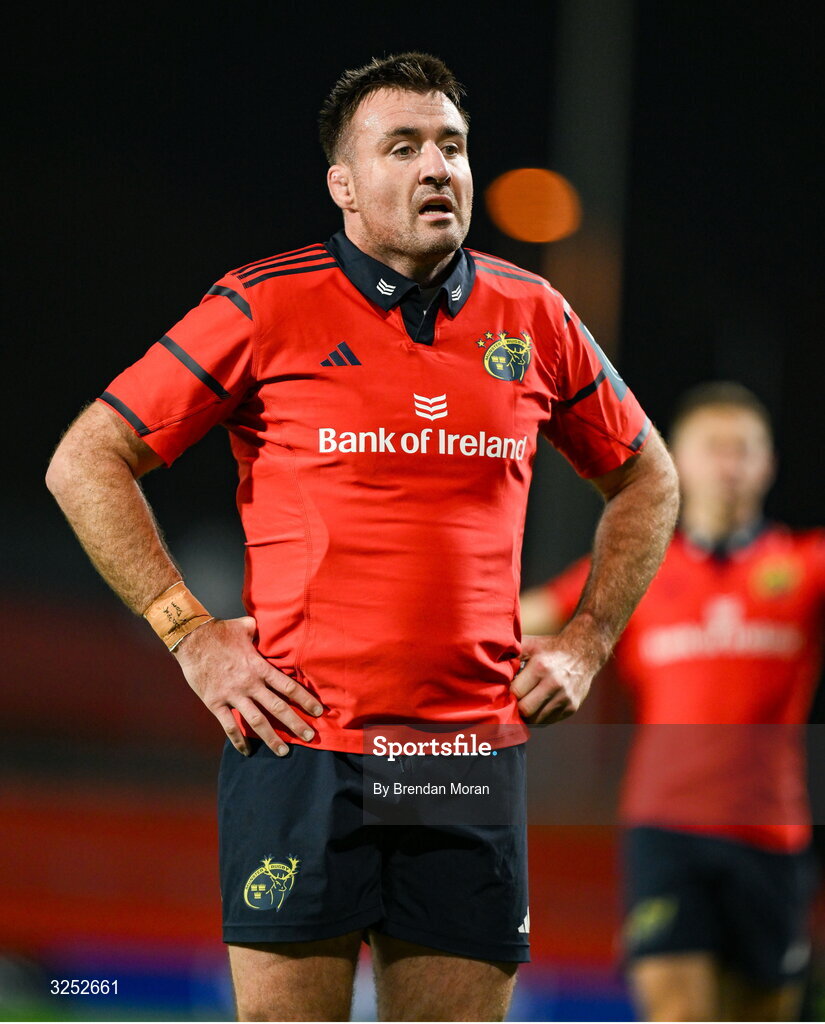 4 October 2025; Niall Scannell of Munster during the United Rugby Championship match between Munster and Cardiff Rugby at Thomond Park in Limerick. Photo by Brendan Moran/Sportsfile