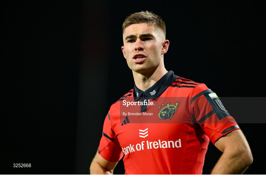 4 October 2025; Jack Crowley of Munster during the United Rugby Championship match between Munster and Cardiff Rugby at Thomond Park in Limerick. Photo by Brendan Moran/Sportsfile