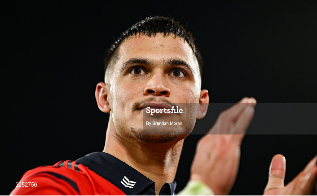 4 October 2025; Thaakir Abrahams of Munster after his side's victory in the United Rugby Championship match between Munster and Cardiff Rugby at Thomond Park in Limerick. Photo by Brendan Moran/Sportsfile