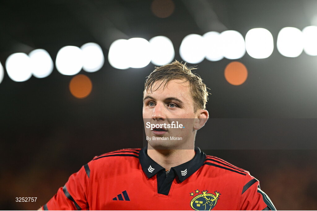 4 October 2025; Gavin Coombes of Munster after his side's victory in the United Rugby Championship match between Munster and Cardiff Rugby at Thomond Park in Limerick. Photo by Brendan Moran/Sportsfile