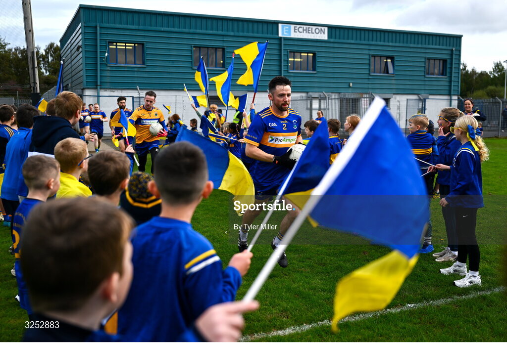 5 October 2025; Michael Rock of Carnew makes his way onto the pitch before the Wicklow County Senior Club Football Championship final match between Baltinglass and Carnew Emmets at Echelon Park, Aughrim. Photo by Tyler Miller/Sportsfile