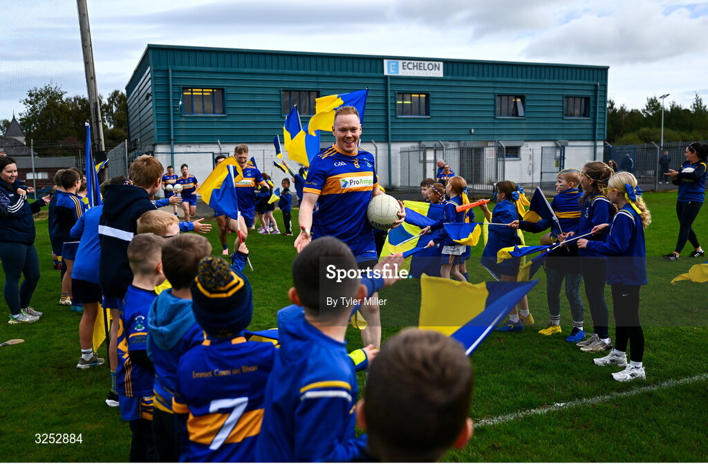 5 October 2025; Conor Behan of Carnew makes his way onto the pitch before the Wicklow County Senior Club Football Championship final match between Baltinglass and Carnew Emmets at Echelon Park, Aughrim. Photo by Tyler Miller/Sportsfile