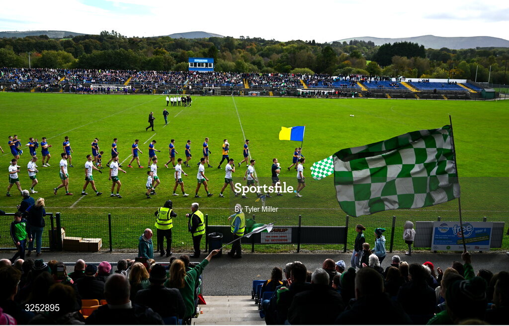 5 October 2025; A general view of the pre-match parade before the Wicklow County Senior Club Football Championship final match between Baltinglass and Carnew Emmets at Echelon Park, Aughrim. Photo by Tyler Miller/Sportsfile