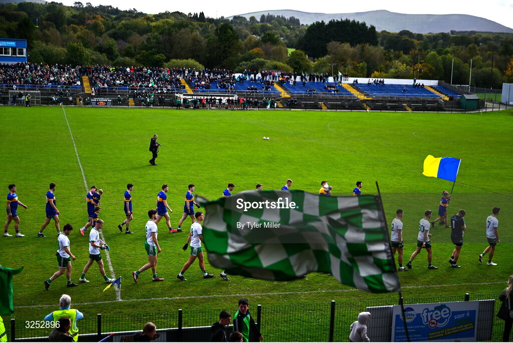 5 October 2025; A general view of the pre-match parade before the Wicklow County Senior Club Football Championship final match between Baltinglass and Carnew Emmets at Echelon Park, Aughrim. Photo by Tyler Miller/Sportsfile