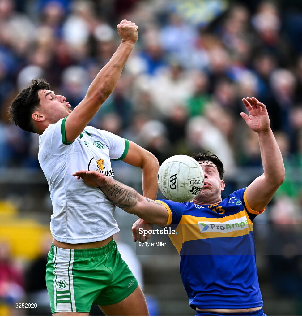 5 October 2025; Eoin Kavanagh of Carnew Emmetts in action against Arun Daly Danne of Baltinglass during the Wicklow County Senior Club Football Championship final match between Baltinglass and Carnew Emmets at Echelon Park, Aughrim. Photo by Tyler Miller/Sportsfile