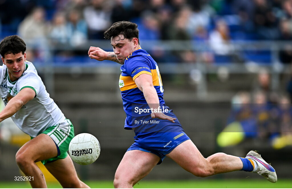 5 October 2025; Eoin Kavanagh of Carnew Emmetts shoots to score his side's first goal which was subsequently disallowed during the Wicklow County Senior Club Football Championship final match between Baltinglass and Carnew Emmets at Echelon Park, Aughrim. Photo by Tyler Miller/Sportsfile