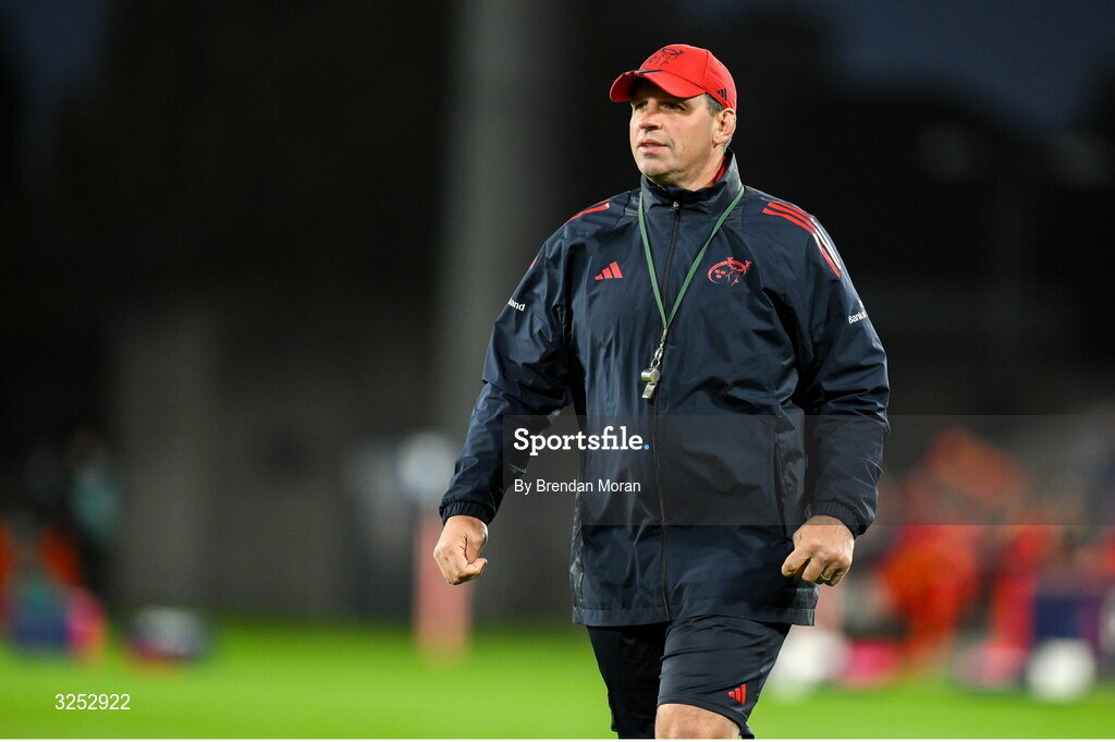 4 October 2025; Munster defence coach Denis Leamy before the United Rugby Championship match between Munster and Cardiff Rugby at Thomond Park in Limerick. Photo by Brendan Moran/Sportsfile
