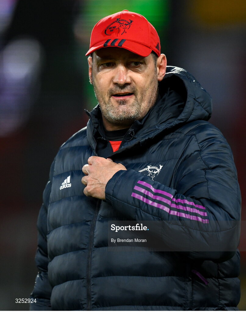 4 October 2025; Munster forwards coach Alex Codling before the United Rugby Championship match between Munster and Cardiff Rugby at Thomond Park in Limerick. Photo by Brendan Moran/Sportsfile