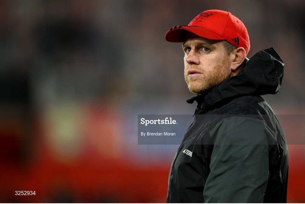 4 October 2025; Munster scrum coach Sean Cronin before the United Rugby Championship match between Munster and Cardiff Rugby at Thomond Park in Limerick. Photo by Brendan Moran/Sportsfile