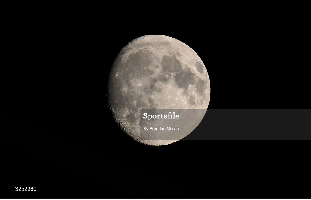 4 October 2025; A waxing gibbous moon above the stadium during the United Rugby Championship match between Munster and Cardiff Rugby at Thomond Park in Limerick. Photo by Brendan Moran/Sportsfile