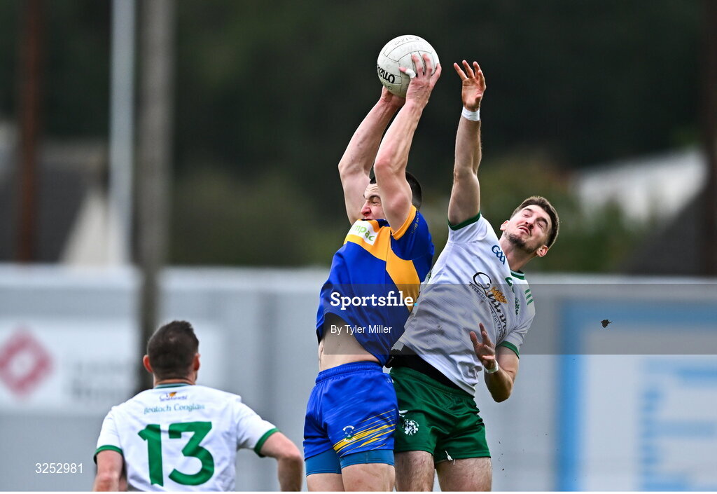 5 October 2025; Sean Murphy of Carnew Emmetts in action against Tom Burke of Baltinglass during the Wicklow County Senior Club Football Championship final match between Baltinglass and Carnew Emmets at Echelon Park, Aughrim. Photo by Tyler Miller/Sportsfile