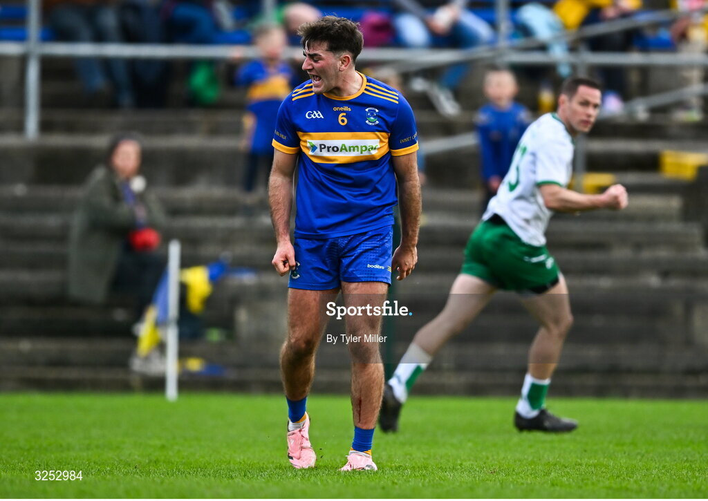 5 October 2025; Thomas Collins of Carnew Emmetts reacts after his side concede a point during the Wicklow County Senior Club Football Championship final match between Baltinglass and Carnew Emmets at Echelon Park, Aughrim. Photo by Tyler Miller/Sportsfile