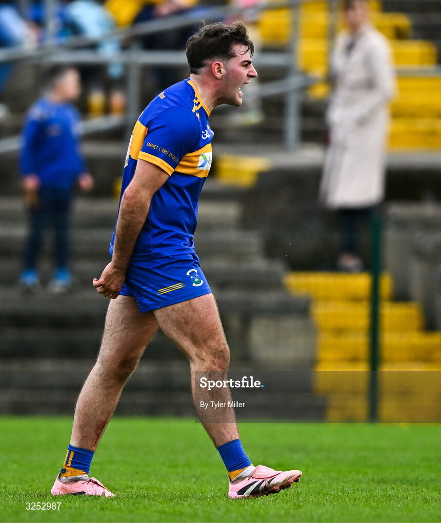 5 October 2025; Thomas Collins of Carnew Emmetts reacts after his side concede a point during the Wicklow County Senior Club Football Championship final match between Baltinglass and Carnew Emmets at Echelon Park, Aughrim. Photo by Tyler Miller/Sportsfile