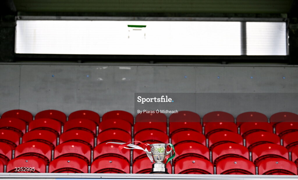 5 October 2025; The Canon Hamilton Cup before the Clare County Senior Club Hurling Championship final match between Clooney Quin and Éire Óg Ennis at Zimmer Biomet Páirc Chíosóg in Ennis, Clare. Photo by Piaras Ó Mídheach/Sportsfile