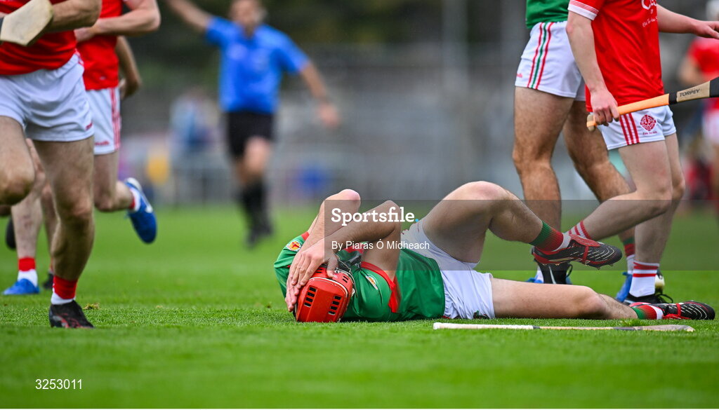 5 October 2025; Peter Duggan of Clooney Quin after a tackle during the Clare County Senior Club Hurling Championship final match between Clooney Quin and Éire Óg Ennis at Zimmer Biomet Páirc Chíosóg in Ennis, Clare. Photo by Piaras Ó Mídheach/Sportsfile