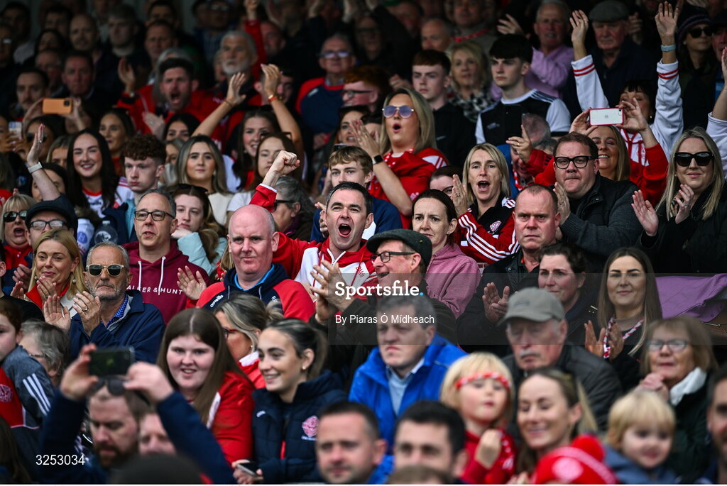 5 October 2025; Éire Óg Ennis supporters at the Clare County Senior Club Hurling Championship final match between Clooney Quin and Éire Óg Ennis at Zimmer Biomet Páirc Chíosóg in Ennis, Clare. Photo by Piaras Ó Mídheach/Sportsfile