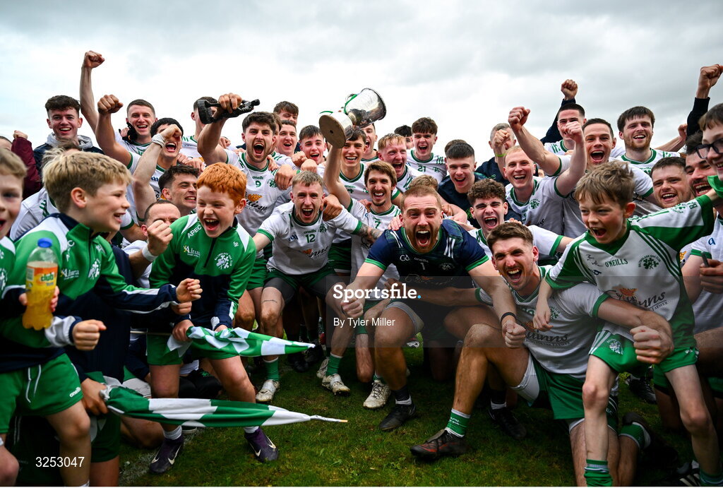 5 October 2025; The Baltinglass team celebrate with supporters after the Wicklow County Senior Club Football Championship final match between Baltinglass and Carnew Emmets at Echelon Park, Aughrim. Photo by Tyler Miller/Sportsfile