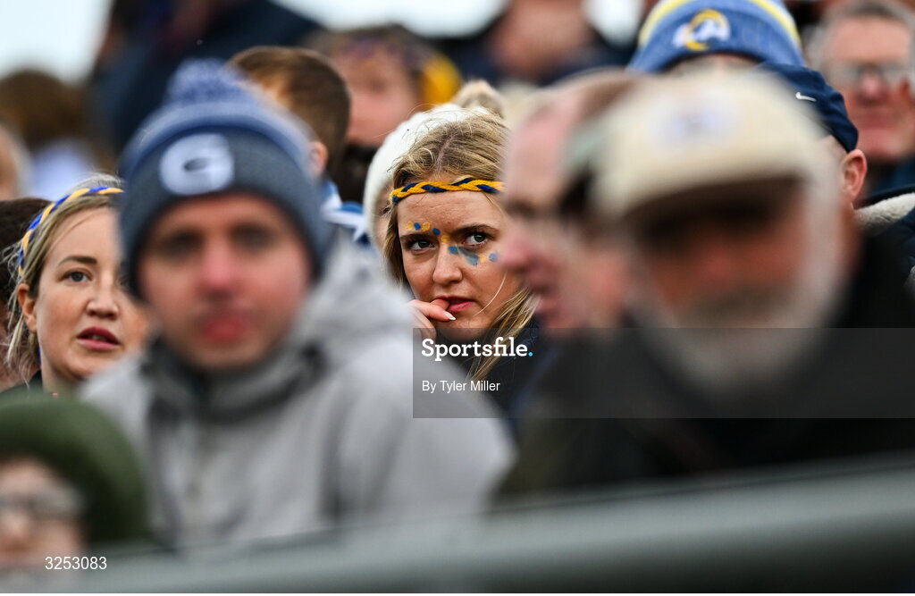 5 October 2025; A Carnew Emmetts supporter watches on during the Wicklow County Senior Club Football Championship final match between Baltinglass and Carnew Emmets at Echelon Park, Aughrim. Photo by Tyler Miller/Sportsfile