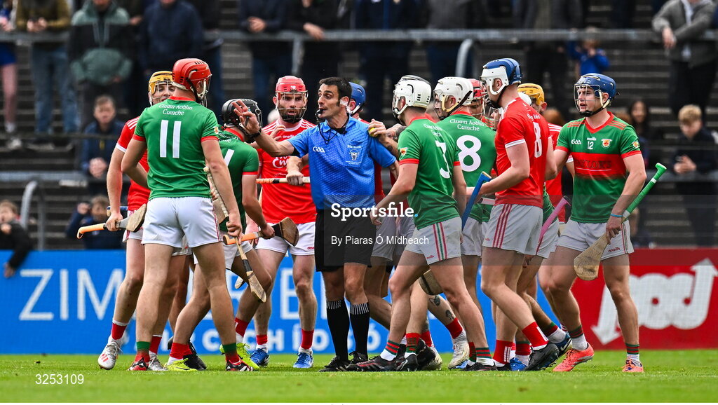 5 October 2025; Referee John Bugler during the Clare County Senior Club Hurling Championship final match between Clooney Quin and Éire Óg Ennis at Zimmer Biomet Páirc Chíosóg in Ennis, Clare. Photo by Piaras Ó Mídheach/Sportsfile