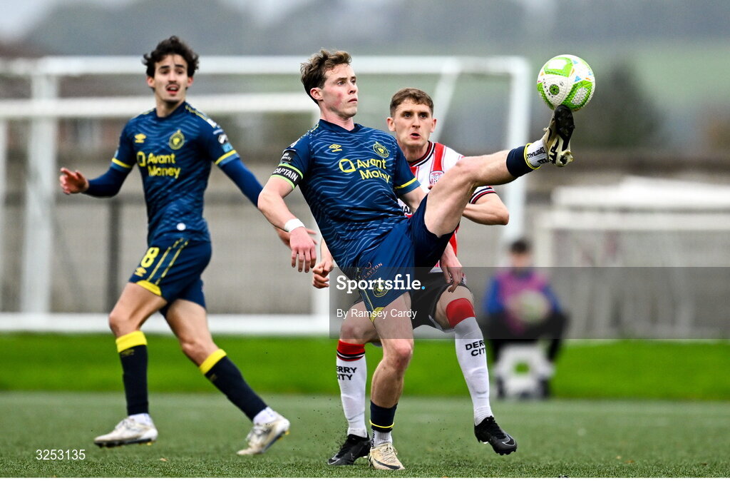 5 October 2025; Will Fitzgerald of Sligo Rovers in action against Ronan Boyce of Derry City during the SSE Airtricity Men's Premier Division match between Derry City and Sligo Rovers at The Ryan McBride Brandywell Stadium in Derry. Photo by Ramsey Cardy/Sportsfile