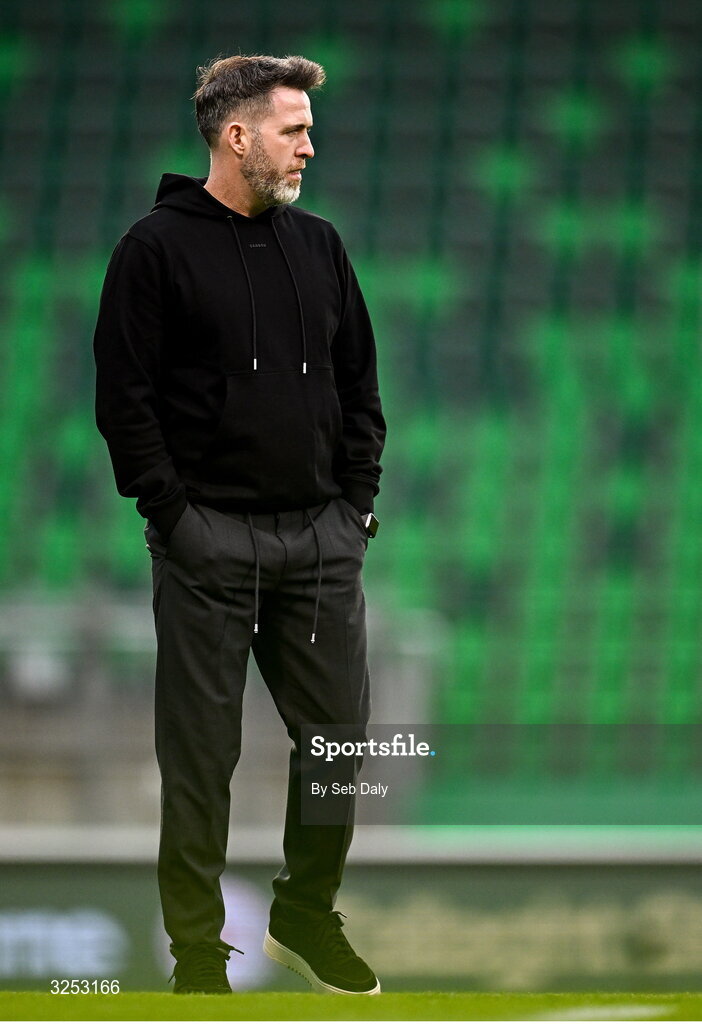 5 October 2025; Shamrock Rovers manager Stephen Bradley before the Sports Direct Men’s FAI Cup semi-final match between Shamrock Rovers and Kerry FC at Tallaght Stadium in Dublin. Photo by Seb Daly/Sportsfile