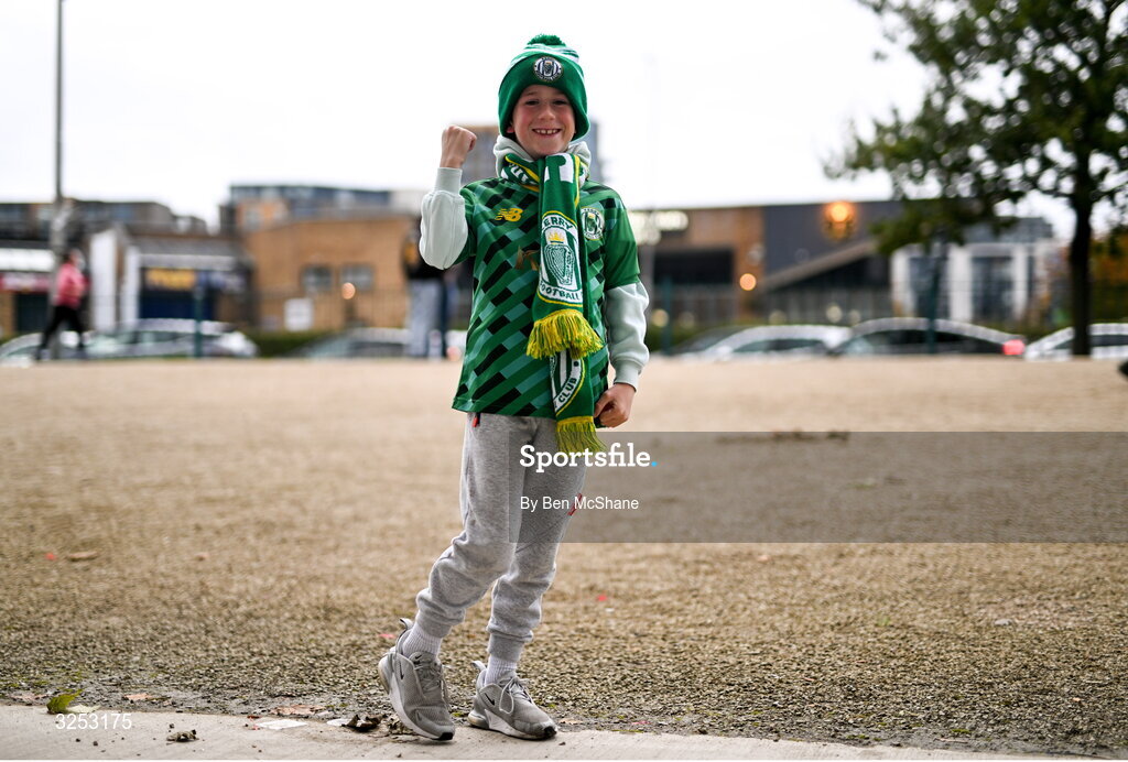 5 October 2025; Kerry FC supporter Joe Woulfe, age 8, from Ballybunion, Kerry, before the Sports Direct Men’s FAI Cup semi-final match between Shamrock Rovers and Kerry FC at Tallaght Stadium in Dublin. Photo by Ben McShane/Sportsfile