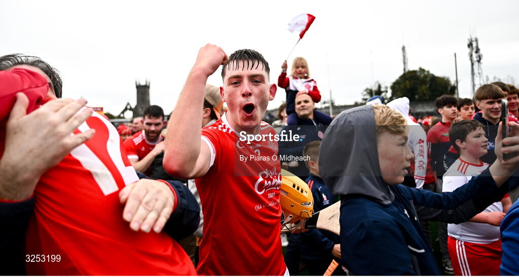 5 October 2025; David McNamara of Éire Óg Ennis celebrates after victory in the Clare County Senior Club Hurling Championship final match between Clooney Quin and Éire Óg Ennis at Zimmer Biomet Páirc Chíosóg in Ennis, Clare. Photo by Piaras Ó Mídheach/Sportsfile
