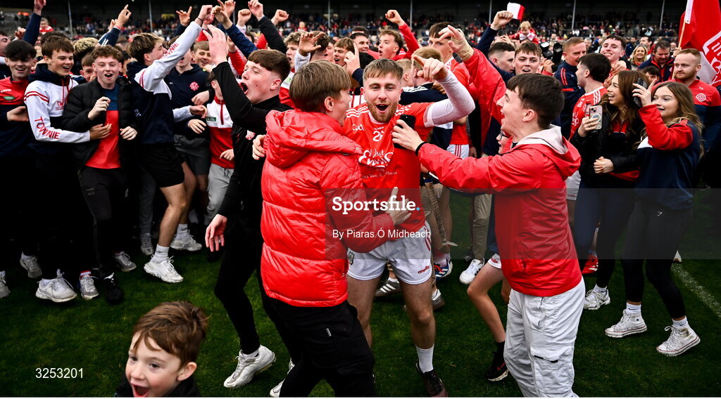 5 October 2025; Bruce Pigott of Éire Óg Ennis celebrates after victory in the Clare County Senior Club Hurling Championship final match between Clooney Quin and Éire Óg Ennis at Zimmer Biomet Páirc Chíosóg in Ennis, Clare. Photo by Piaras Ó Mídheach/Sportsfile