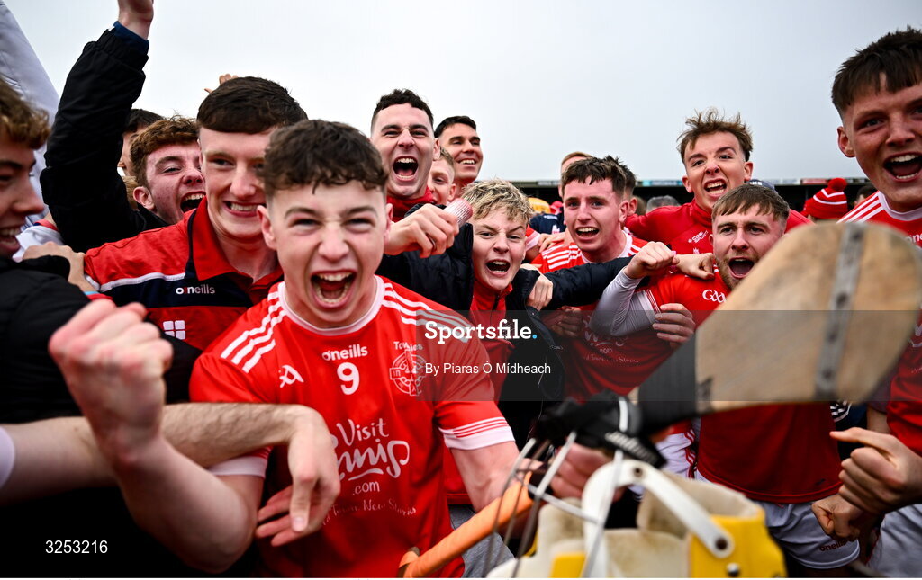 5 October 2025; Éire Óg Ennis players and supporters celebrate after victory in the Clare County Senior Club Hurling Championship final match between Clooney Quin and Éire Óg Ennis at Zimmer Biomet Páirc Chíosóg in Ennis, Clare. Photo by Piaras Ó Mídheach/Sportsfile