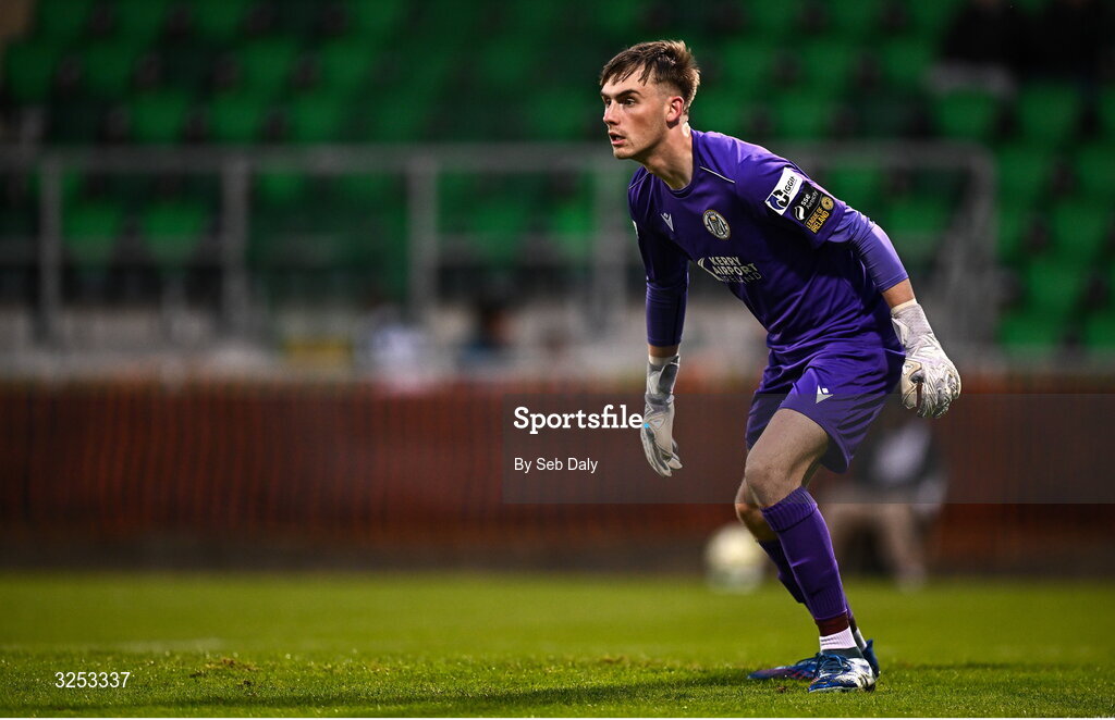 5 October 2025; Kerry FC goalkeeper Darragh Foley during the Sports Direct Men’s FAI Cup semi-final match between Shamrock Rovers and Kerry FC at Tallaght Stadium in Dublin. Photo by Seb Daly/Sportsfile
