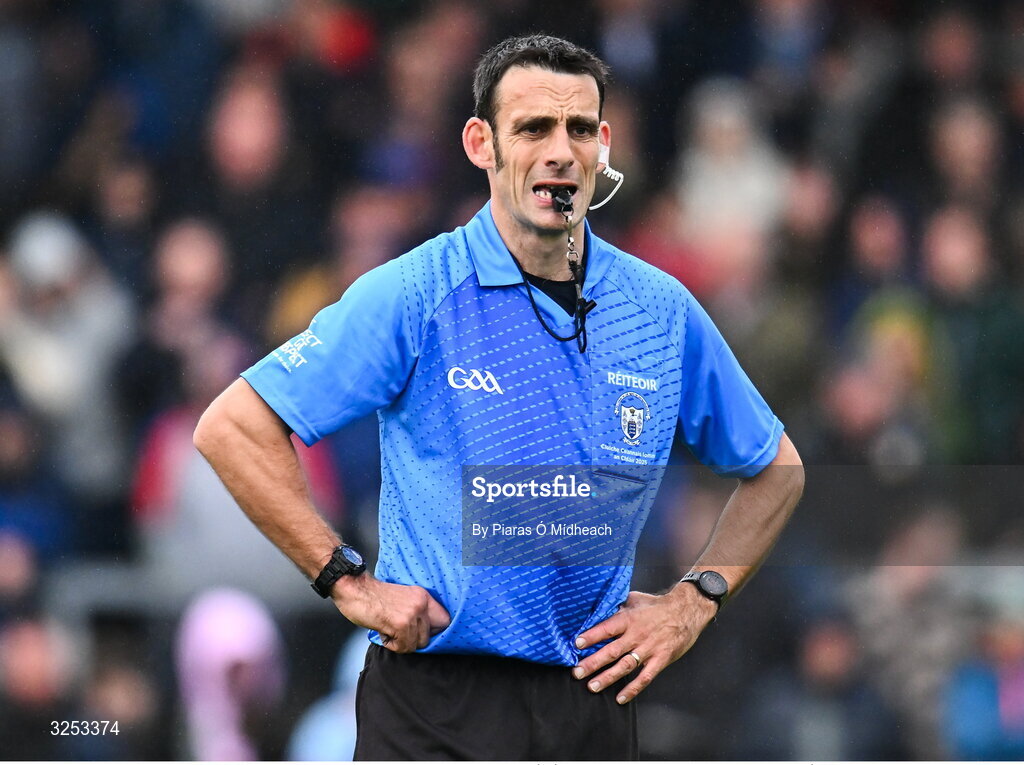 5 October 2025; Referee John Bugler during the Clare County Senior Club Hurling Championship final match between Clooney Quin and Éire Óg Ennis at Zimmer Biomet Páirc Chíosóg in Ennis, Clare. Photo by Piaras Ó Mídheach/Sportsfile
