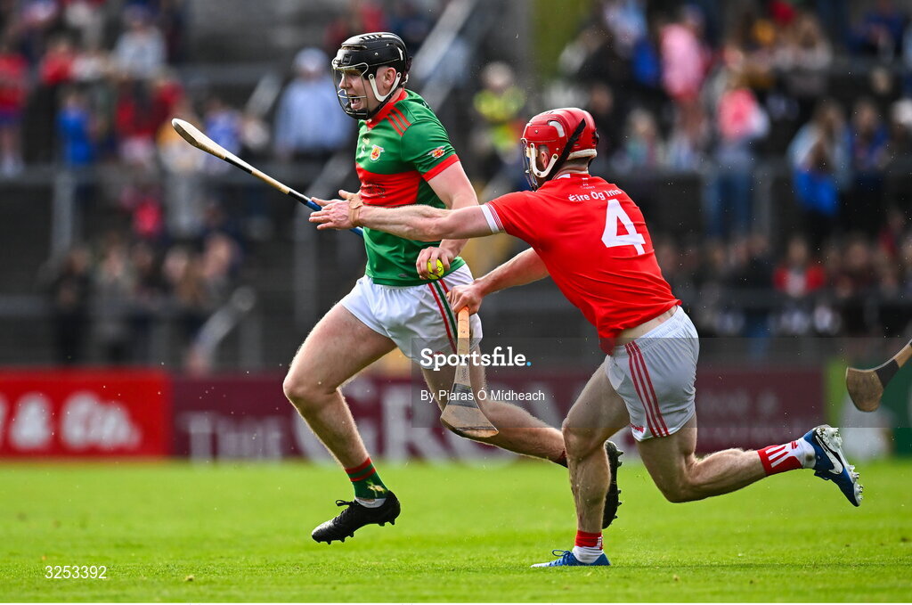 5 October 2025; John Conneally of Clooney Quin in action against Liam Corry of Éire Óg Ennis during the Clare County Senior Club Hurling Championship final match between Clooney Quin and Éire Óg Ennis at Zimmer Biomet Páirc Chíosóg in Ennis, Clare. Photo by Piaras Ó Mídheach/Sportsfile