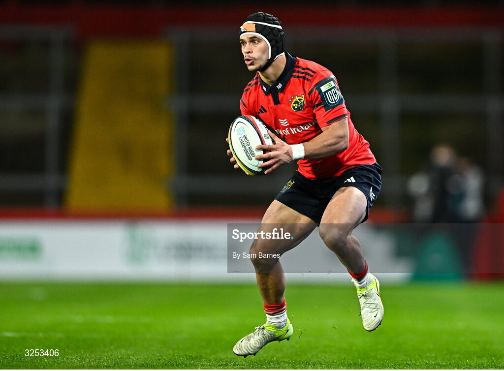 4 October 2025; Thaakir Abrahams of Munster during the United Rugby Championship match between Munster and Cardiff Rugby at Thomond Park in Limerick. Photo by Sam Barnes/Sportsfile