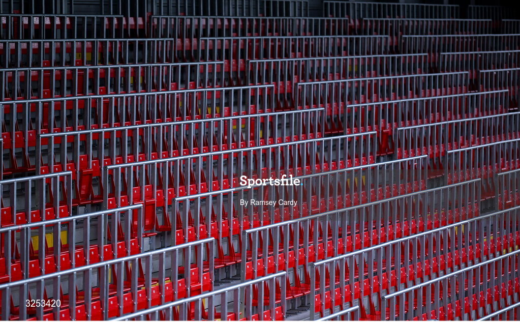 5 October 2025; A general view of the seating in The North Stand before the SSE Airtricity Men's Premier Division match between Derry City and Sligo Rovers at The Ryan McBride Brandywell Stadium in Derry. Photo by Ramsey Cardy/Sportsfile